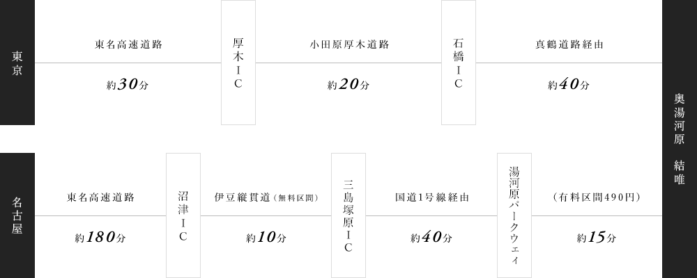 - 当館は、熱海と箱根どちらへも車で約30分に位置しております。