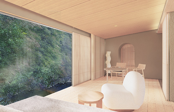 藤木川と奥湯河原の山懐に面し、豊かな四季の移ろいを感じながら、至福のプライベートタイムをお過ごしいただけます。