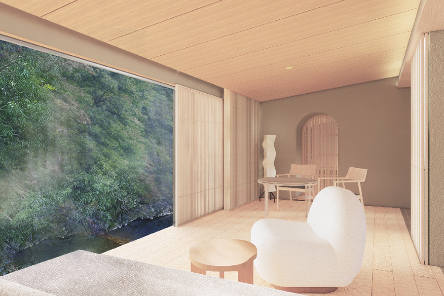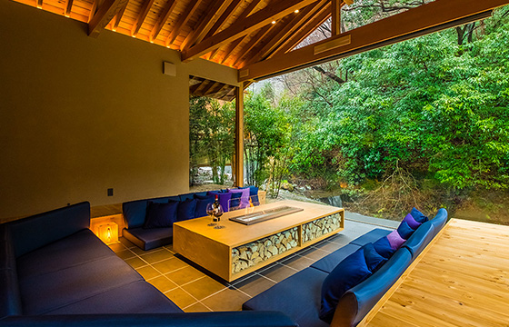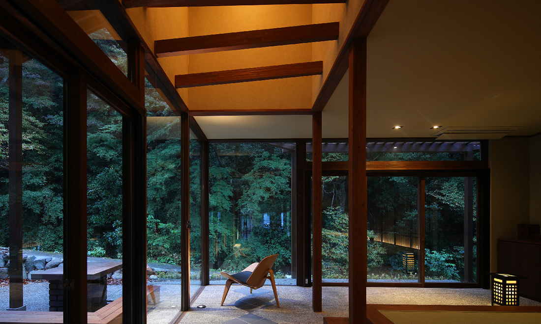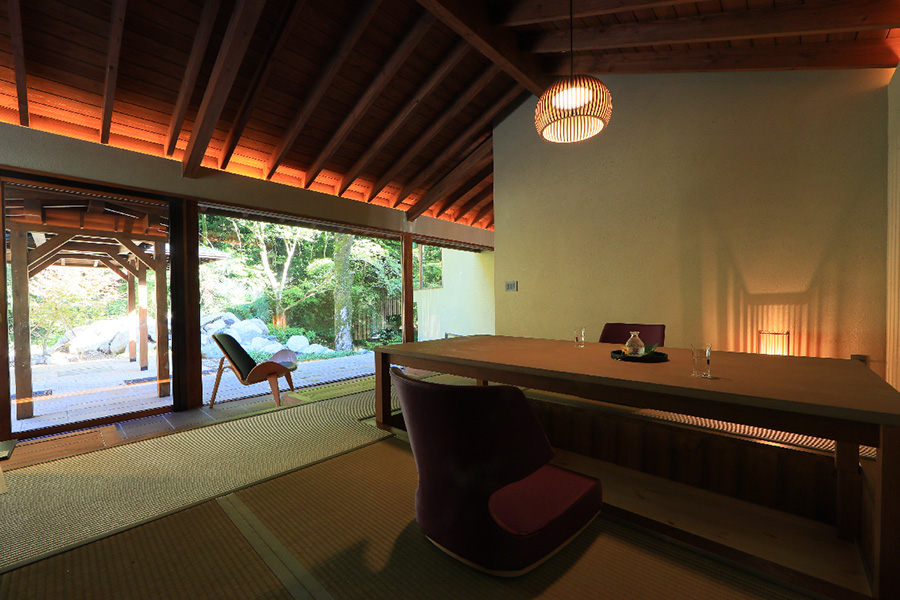 静寂の中にひびく清流の水音と、風のそよぎが心地よい大人の隠れ宿には、