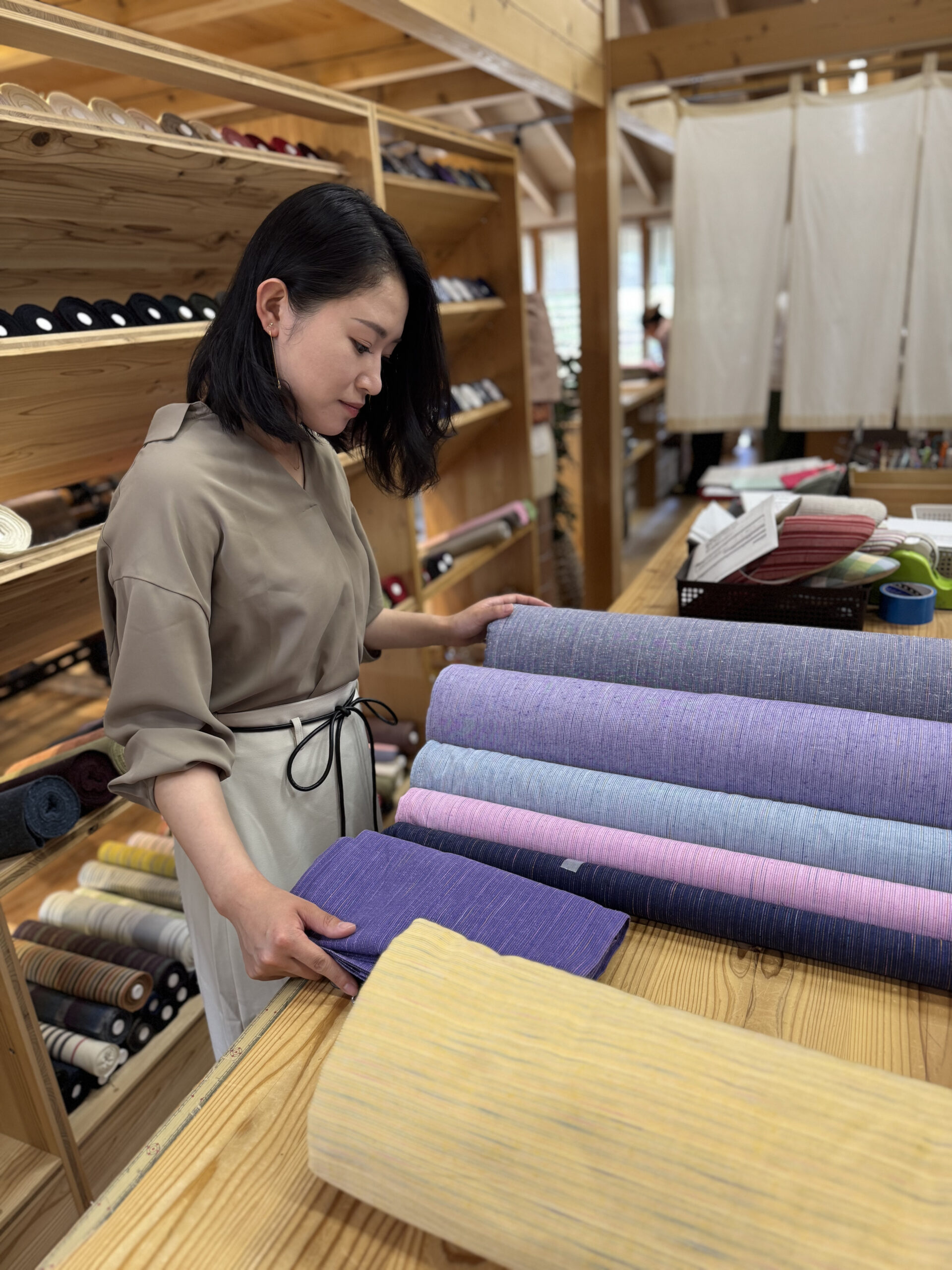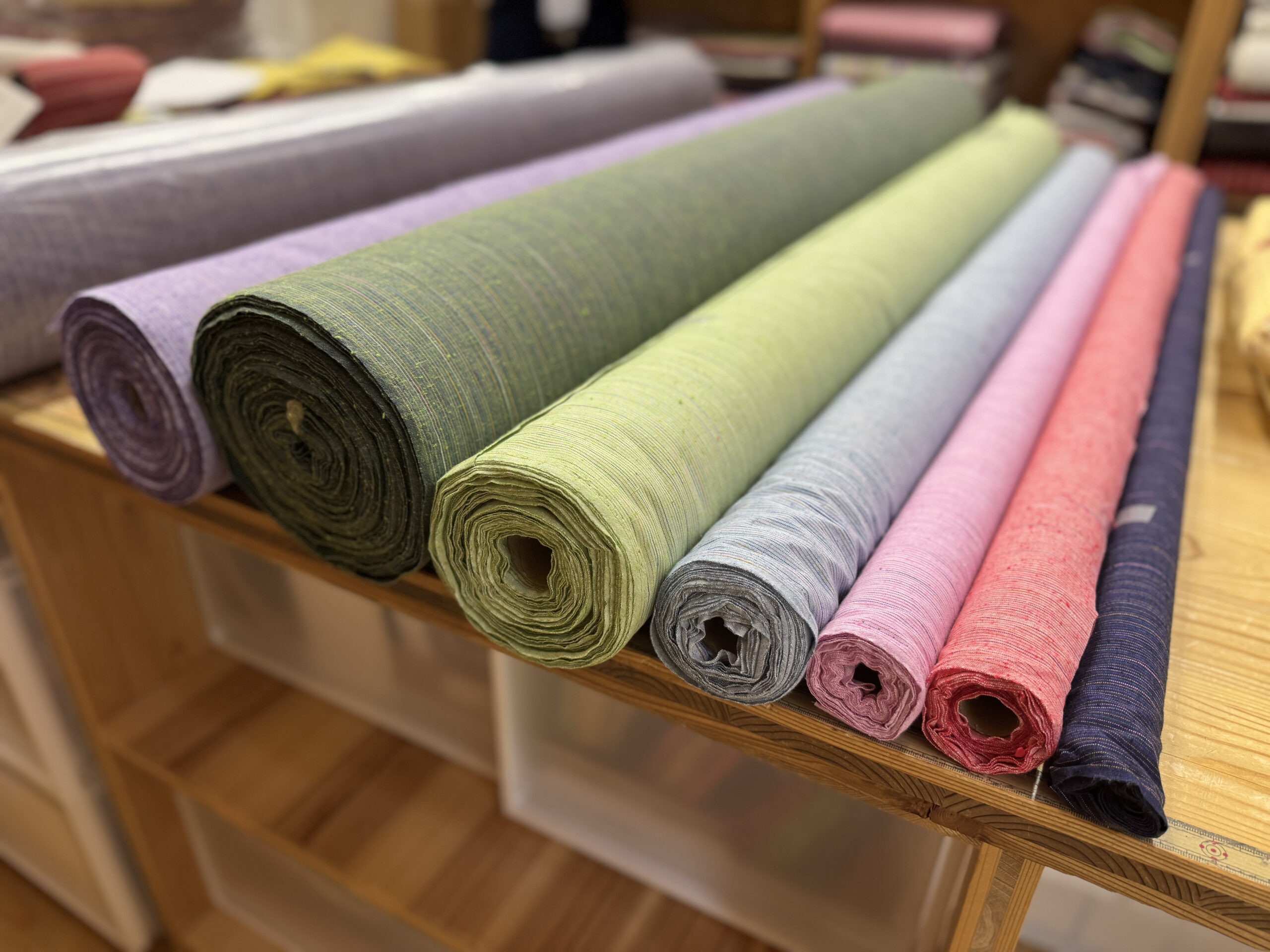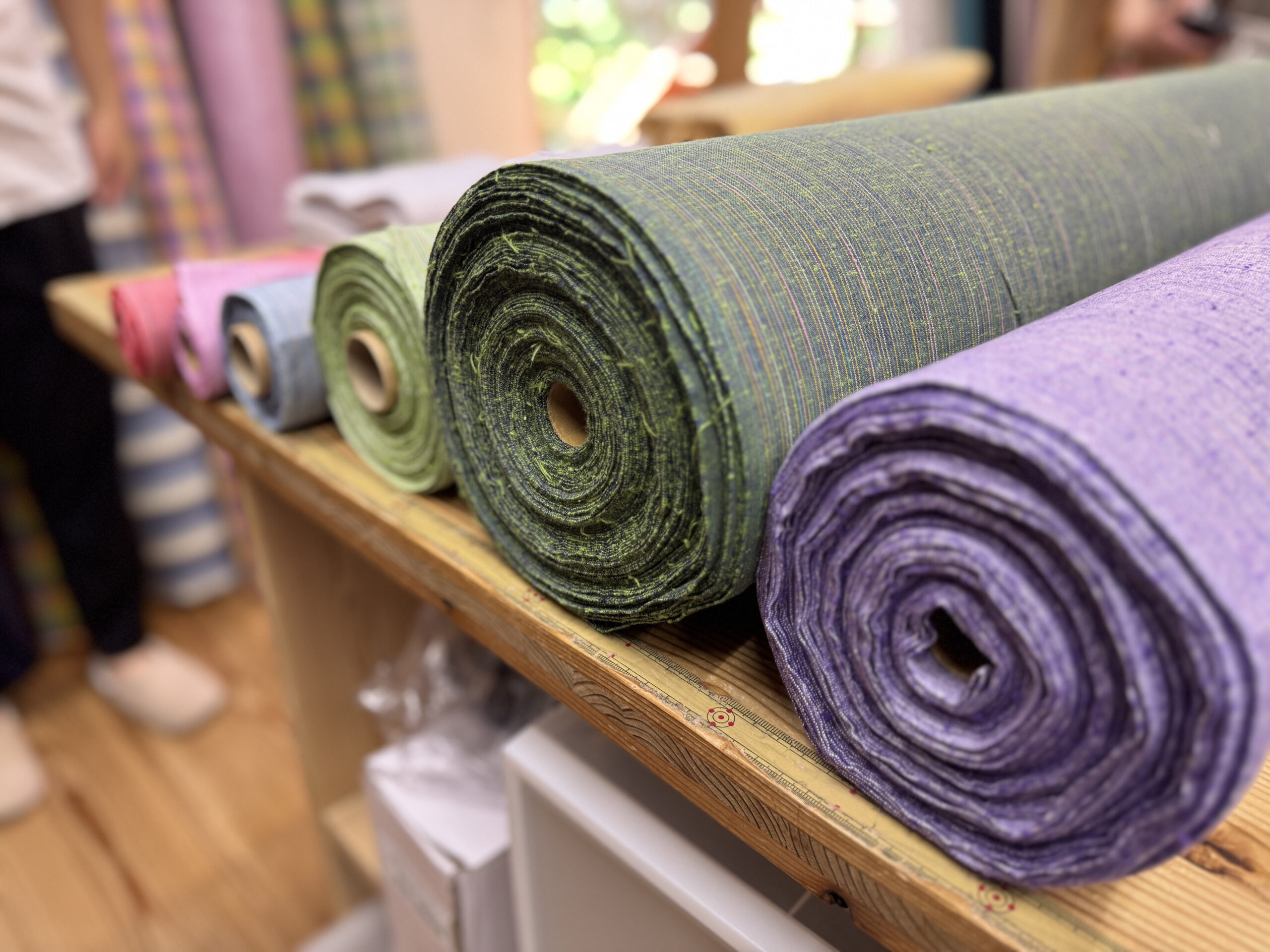 まずは生地選びからスタートです。どれも本当に美しい色合いで、迷ってしまいます。